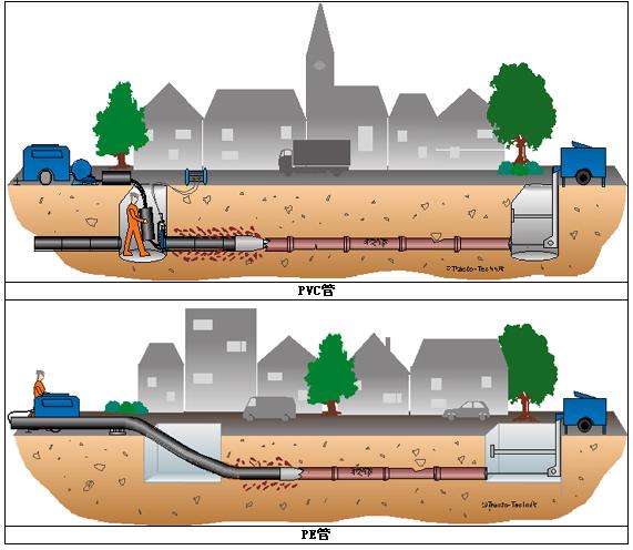 相比传统非开挖修复,碎管法具有工艺精度高、可扩管、工作效率高、造价低等优点。同时可以更换同级或大一级管径的PE管,由于PE管内壁光滑,流量相对原有管道大大增加。