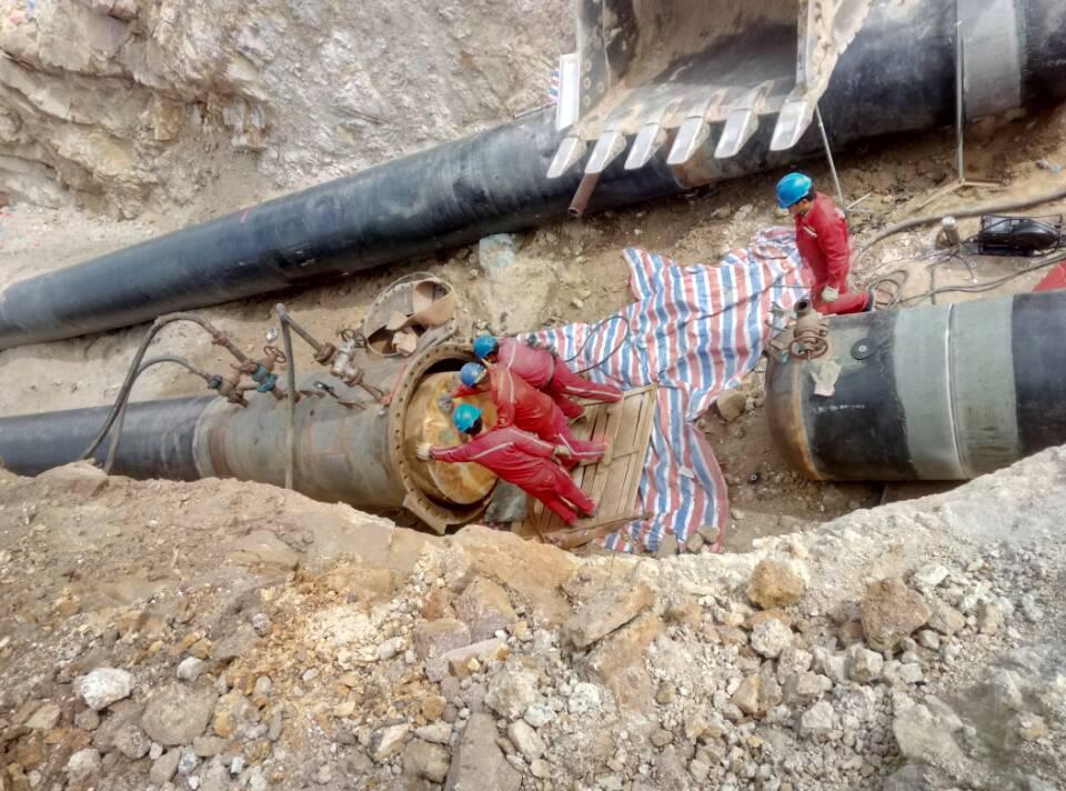 我公司承接了陕京四线输气管道线路工程二标:沙漠段38.7km,山区段90.691km,全线共计:129.391km,共分13段施工。尽管水源紧缺,段落较多,进场道路艰难,施工难度大,但在以张锁柱经理为首的项目管理人员的带领下,中拓陕京四线项目部全体成员上下一心,团结一致,攻难克艰。自2017年7月3日至9月30日,历时近三个月,主体工程全部顺利完工,至10月10日扫尾工作结束。百天无事故,优质高效的完成了既定目标,得到了甲方、EPC和业主的一致好评,并戏称为“陕四速度”。