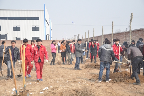 春风和暖,大地紫薇。公司发展日新月异,新厂区建设如火如荼。2012年3月10日,公司领导层、各分公司、各机关单位人员一行50多人热火朝天的参加了新区绿化植树活动。