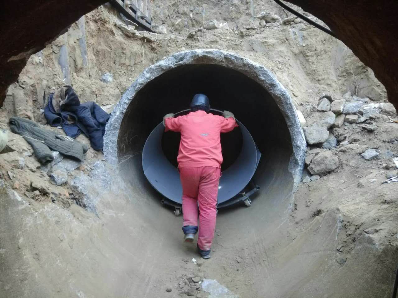 The pipeline was laid in the nineties and has been in operation for more than 20 years. The pipeline has been subject to heavy soil pressure and large-scale vehicle moving shocks, causing more leakage points and serious waste of water resources, adding routine maintenance work. In order to ensure that the pipeline safe operation, environmental protection, reduce the workload of earth excavation, the pipeline using long-term trenchless stainless steel lining repairing technology for the old pipeline .